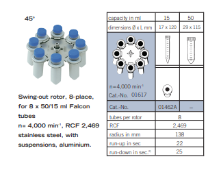 Set of 8, Adaptors for 15 ml conical (falcon type) tubes for use in 1617 and 1619 rotors.